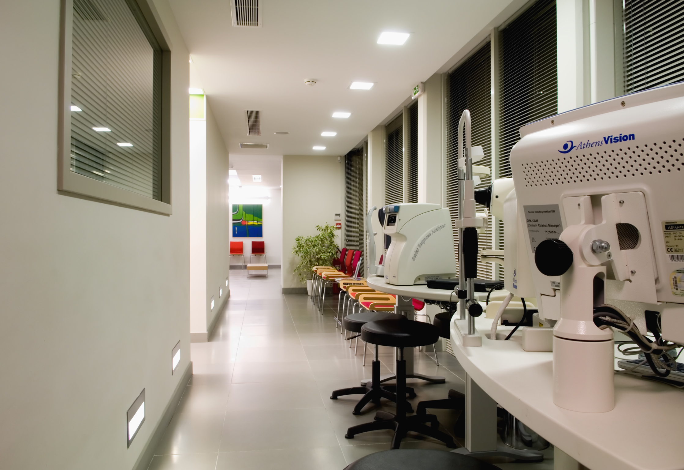 Διαθέτουμε δεκαοκτώ (18) συνολικά εξεταστήρια, άρτια εξοπλισμένα με τα πλέον σύχρονα τεχνολογικά μέσα και ειδικά διαμορφωμένες χειρουργικές αίθουσες για το σύνολο των οφθαλμολογικών επεμβάσεων, προσθίου και οπισθίου ημιμορίου, και διαθλαστικής χειρουργικής, με συνολική δυνατότητα 60 και πλέον χειρουργικών επεμβάσεων ημερησίως.