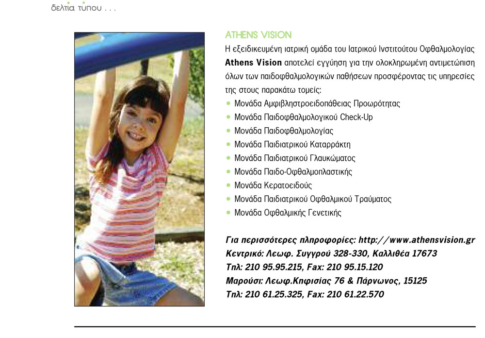 Δελτίο τύπου στο περιοδικό “Όλα για το παιδί” Φθινόπωρου-Χειμώνα 2010-2011